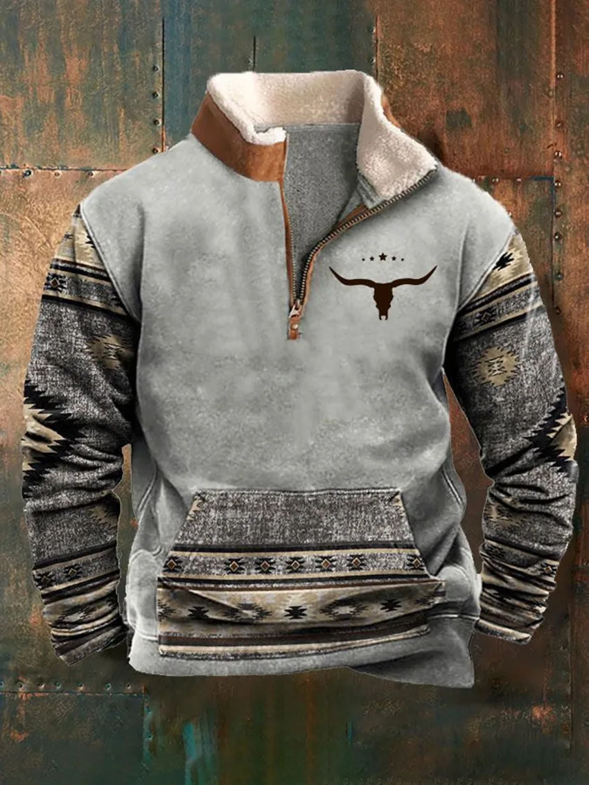 Men's Casual Half-Zip Long-Sleeved Wool Winter Jacket